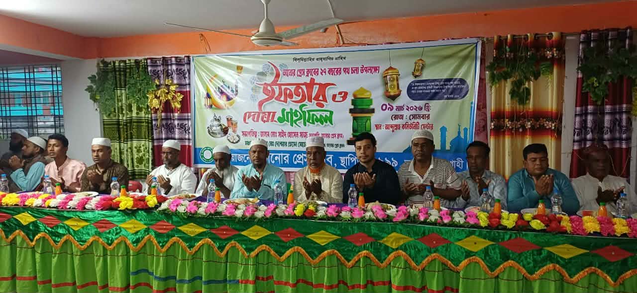 রাজশাহীর তানোর প্রেস ক্লাবের উদ্যোগে ইফতার ও দোয়া মাহফিল অনুষ্ঠিত হয়েছে। সোমবার বিকালে তানোর আব্দুল্লাহ কমিউনিটি সেন্টার অনুষ্ঠিত ইফতার ও দোয়া মাহফিল অনুষ্ঠানে সভাপতিত্ব করেন তানোর প্রেস ক্লাবের সভাপতি সাইদ সাজু। তানোর প্রেস ক্লাবের সাধারণ সম্পাদক দেলোয়ার হোসেন সোহেলের সঞ্চালনায় অনুষ্ঠিত অনুষ্ঠানে দোয়া মোনাজাত করেন আল মাদ্রাসাতুল ইসলাহিয়া দাখিল মাদ্রাসার সুপার মাওলানা মোখছেদ আলী।