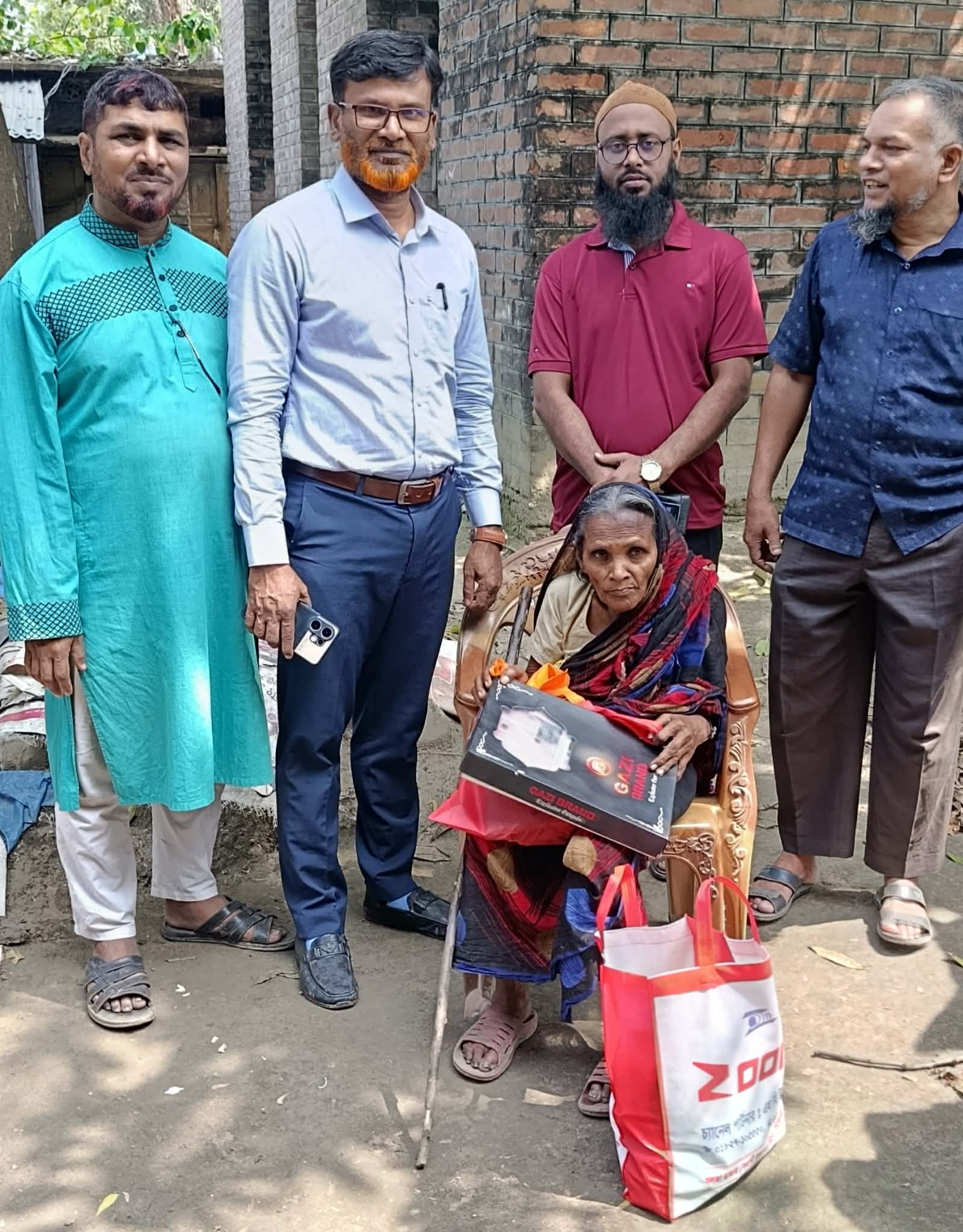 সিরাজগঞ্জের সলঙ্গায় বৃদ্ধা রহিমা'র ঘরে ঈদের বাজার ও নতুন কাপড় পৌঁছে দিলেন একটি মানবিক সংগঠন। সামাজিক যোগাযোগমাধ্যম ও অনলাইন গণমাধ্যমে প্রতিবেদন প্রকাশের পর সহায়তার হাত বাড়িয়ে দেন মানবিক সংগঠন "প্রিয় সলঙ্গার গল্প" ফেসবুক গ্রুপের চীফ এডমিন শাহ আলম মাস্টার।গত ১৬মার্চ সোমবারে ঈদের বাজার ও নতুন কাপড়ের চিন্তায় মগ্ন শিরোনামে সলঙ্গা কুঠিপাড়া হাসপাতালের পুরাতন ভবনে বসবাসকারী অসহায় বৃদ্ধা রহিমা'র একটি ভিডিও সামাজিক যোগাযোগমাধ্যমে প্রকাশ করা হয়। একই সঙ্গে দৈনিক কাগজ অনলাইন গণমাধ্যমে এ বিষয়ে প্রতিবেদন প্রকাশিত হলে বিষয়টি দ্রুত মানুষের নজরে আসে।ভিডিওটি দেখে সহযোগিতার আশ্বাস দেন স্থানীয় একটি মানবিক সংগঠন "প্রিয় সলঙ্গার গল্প" ফেসবুক গ্রুপ কর্তৃপক্ষ। আজ বৃহস্প্রতিবার সকালে অসহায় বৃদ্ধা রহিমা'র বাড়িতে উপস্থিত হয়ে ঈদ উপলক্ষে বিভিন্ন খাদ্যসামগ্রী তুলে দেন "প্রিয় সলঙ্গার গল্প" ফেসবুক গ্রুপ। সহায়তার মধ্যে ছিল রহিমা'র জন্য নতুন কাপড়,তার স্বামীর জন্য পাঞ্জাবি, লুঙ্গি এবং এক বস্তা চাল,গরুর মাংস,ডাল, সয়াবিন তেল, চিনি, লবণ,ও লাচ্ছা সেমাই,সাবানসহ নিত্যপ্রয়োজনীয় পণ্য।ঈদের বাজার ও নতুন কাপড় পেয়ে অসহায় রহিমা আনন্দে কান্না করে দেয়। তিনি বলেন অনেক দিন পর এবার ঈদে ভাল খাবার খেতে পারব। নতুন কাপড় পড়তে পারব। যারা আমাকে ঈদের বাজার ও নতুন কাপড় দিয়ে সহযোগিতা করলেন,তাদের জন্য আল্লাহর কাছে দোয়া করি আল্লাহ আপনাদের ভালো রাখুক। অসহায় রহিমা'র সংসারে আয় বৃদ্ধির লক্ষে ঈদের পরে প্রিয় সলঙ্গার গল্প গ্রুপের পক্ষ থেকে একটি ছাগল কিনে দেবার প্রতিশ্রুতি দিয়েছেন গ্রুপ কর্তৃপক্ষ। স্থানীয় কয়েকজন জানান, সমাজের সামর্থ্যবান ব্যক্তিরা এভাবে অসহায় মানুষের পাশে দাঁড়ালে তাদের কষ্ট অনেকটাই কমে যাবে।এসময় উপস্থিত ছিলেন গ্রুপটির চীফ এডমিন শাহ আলম মাস্টার,বিশিষ্ট ব্যবসায়ী,জুম ইলেক্ট্রনিক্সের স্বত্বাধিকারী কে.এম আমিনুল ইসলাম হেলাল,সহকারি অধ্যাপক আব্দুল মান্নান সরকার, সাংবাদিক আখতার হোসেন হিরন।