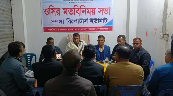 মোঃ আখতার হোসেন হিরন : পুলিশ একা নয়, সাংবাদিকদের সহযোগিতায় অপরাধমুক্ত সলঙ্গা গড়তে চাই। সিরাজগঞ্জের সলঙ্গা থানার সার্বিক আইনশৃঙ্খলা পরিস্থিতির উন্নয়ন ও সামাজিক অপরাধ দমনে সাংবাদিকদের সাথে এক গুরুত্বপূর্ণ মতবিনিময়