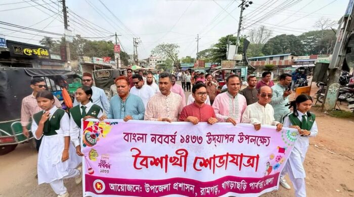 মো.মাসুদ রানা,বিশেষ প্রতিনিধি: খাগড়াছড়ি পার্বত্য জেলার রামগড় উপজেলায় উৎসব মুখর পরিবেশে বাংলা নববর্ষ ১৪৩৩ উদযাপন করা হয়েছে। দিবসটি উপলক্ষে আজ ১৪ এপ্রিল সকালে উপজেলা প্রশাসনের উদ্যোগে একটি বর্ণাঢ্য