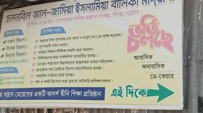 সিংড়া (নাটোর) প্রতিনিধিঃ আর্থিক সংকট ও নানাবিধ সমস্যায় নাটোরের সিংড়ায় চলনবিল জামিয়া ইসলামিয়া মহিলা মাদ্রাসা বন্ধের সিদ্ধান্ত গ্রহন করেন মাদ্রাসা কর্তৃপক্ষ সোমবার(২৯ সেপ্টেম্বর) সিংড়া উপজেলা আহলে সুন্নাত ওয়াল জামায়াত read more