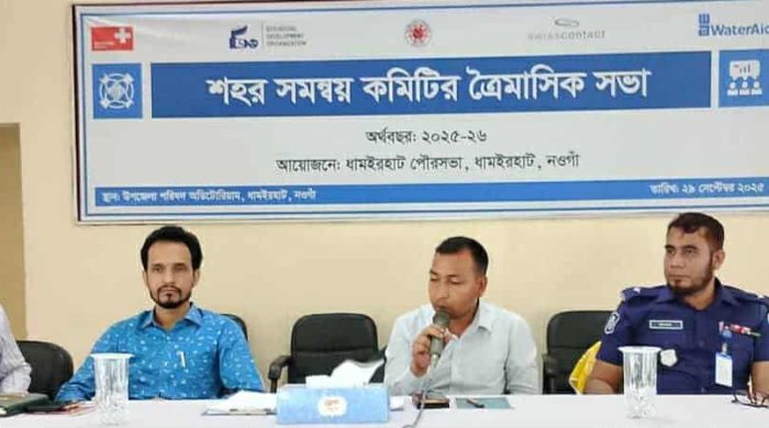 মোঃউজ্জল হোসেন ধামইরহাট (নওগাঁ) প্রতিনিধি: নওগাঁর ধামইরহাটে পৌরসভার শহর সমন্বয় কমিটির ত্রৈমাসিক সভা অনুষ্ঠিত হয়েছে। ২৯ সেপ্টেম্বর বেলা ১১ টায় ধামইরহাট পৌরসভার আয়োজনে ইকো-সোশ্যাল ডেভলপমেন্ট অর্গানাইজেশন (ইএসডিও)’র সহযোগিতায়,