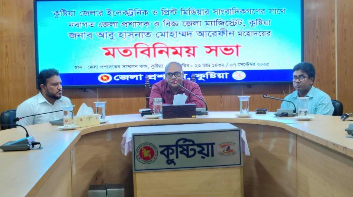 রাশেদুজ্জামান রিমন, কুষ্টিয়া কুষ্টিয়ায় সাংবাদিকদের সাথে নবাগত জেলা প্রশাসক আবু হাসনাত মোহাম্মদ আরেফীন মতবিনিময় সভা করেছেন। রোববার (৭ সেপ্টেম্বর) বিকেলে জেলা প্রশাসকের সম্মেলন কক্ষে এ সভা আয়োজন করা