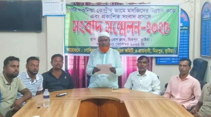 রাশেদুজ্জামান রিমন কুষ্টিয়ার মিরপুরে এক মসজিদ উন্নয়নকল্পে সংবাদ সম্মেলন অনুষ্ঠিত হয়েছে। জেলার মিরপুর উপজেলার গোবিন্দগুনিয়া কেন্দ্রীয় মসজিদ কমিটি ও এলাকাবাসীর যৌথ উদ্যোগে স্থানীয় প্রেসক্লাবে এক সংবাদ সম্মেলন অনুষ্ঠিত হয়। read more