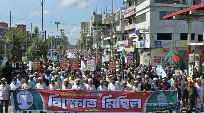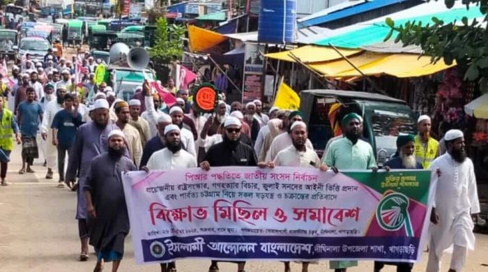 অভিশেখ চন্দ্র রায়, ঠাকুরগাঁও প্রতিনিধি: রাণীশংকৈলে ৫ দফা দাবিতে জামায়াতের বিক্ষোভ মিছিল অনুষ্ঠিত হয়েছে । ২৬ (সেপ্টেম্বর) শুক্রবার বিকাল ৩টায় উপজেলা শাখার উদ্যোগে কেন্দ্রীয় হাই স্কুল মাঠ থেকে