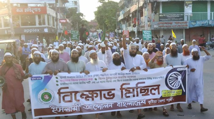 রাশেদুজ্জামান রিমন, কুষ্টিয়া: আগামী জাতীয় নির্বাচনকে সামনে রেখে ৫ দফা দাবি আদায়ে কুষ্টিয়ায় বিক্ষোভ মিছিল ও সমাবেশ করেছে জামায়াতে ইসলামী সদর উপজেলা শাখা। শুক্রবার (২৬ সেপ্টেম্বর) সকালে শহরের চৌড়হাস