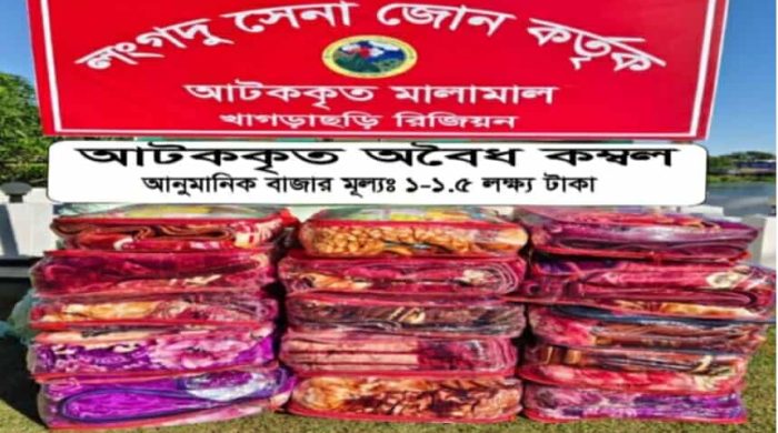 মোঃ এরশাদ আলী, লংগদু (রাঙ্গামাটি) প্রতিনিধি: রাঙ্গামাটির লংগদুতে (তেজস্বী বীর) লংগদু সেনা জোনের অভিযানে উপজেলার গাঁথাছড়া চিটাগাং টিলা হতে বিপুল পরিমাণ ভারতীয় কম্বল জব্দ করা হয়েছে। গোপন সংবাদের ভিত্তিতে