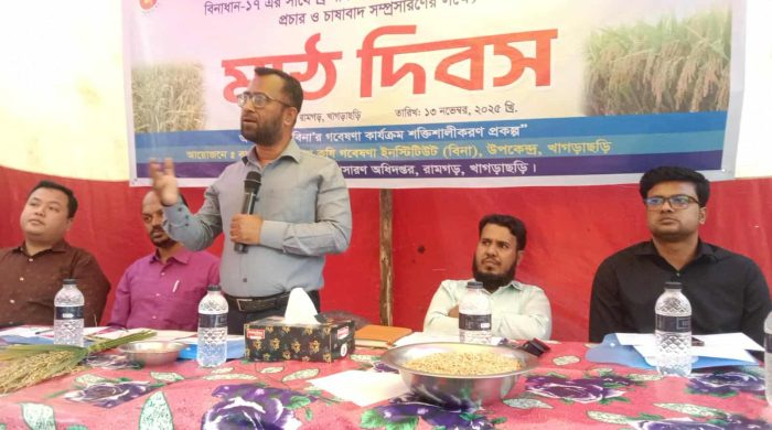 মোঃমাসুদ রানা, বিশেষ প্রতিনিধিঃ খাগড়াছড়ির রামগড়ে বিনাধান-১৭ এর সঙ্গে ব্রি ধান- ৭৫ এর প্রয়োগিক পরীক্ষণ মূল্যায়নে প্রচার ও চাষাবাদ সম্প্রসারণের লক্ষ্যে মাঠ দিবস অনুষ্ঠিত হয়েছে। গতকাল বৃহস্পতিবার (১৩ নভেম্বর) বিকেল