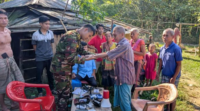 মোঃ হাছান আল মামুন দীঘিনালা (খাগড়াছড়ি) প্রতিনিধি খাগড়াছড়ি জেলার দীঘিনালা উপজেলার বাবুছড়া ইউনিয়নের নুনছড়ি চৌধুরী পাড়ায় সেনাবাহিনীর উদ্যোগে বিনামূল্যে চিকিৎসা সেবা ও ঔষধ বিতরণ কর্মসূচি অনুষ্ঠিত হয়েছে। বুধবার সকাল ১০টা