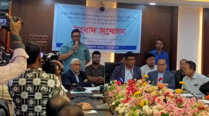 শরিফা বেগম শিউলী স্টাফ রিপোর্টার রংপুর কমিউনিটি মেডিকেল কলেজ ও হাসপাতালের উদ্যোগে এক সংবাদ সম্মেলনে প্রতিষ্ঠানটির কর্তৃপক্ষ সম্প্রতি ঘটে যাওয়া এক রোগীর মৃত্যুর ঘটনার বিষয়ে বিস্তারিত ব্যাখ্যা প্রদান করেছেন। শনিবার