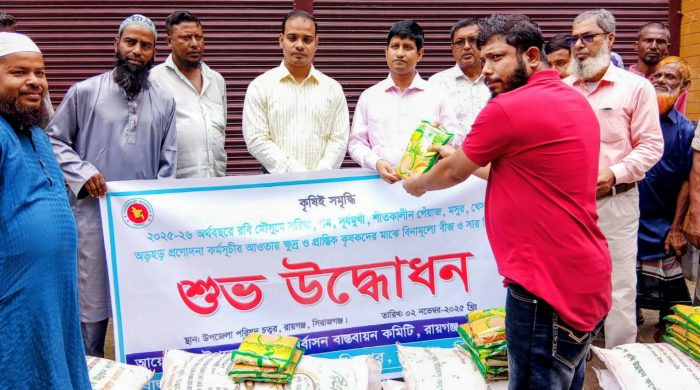 লোকমান হোসেন মিলন রায়গঞ্জ (সিরাজগঞ্জ) প্রতিনিধি: সিরাজগঞ্জের রায়গঞ্জ উপজেলায় কৃষকদের মাঝে বিনামূল্যে বীজ ও সার বিতরণ কার্যক্রমের উদ্বোধন করা হয়েছে। কৃষি উৎপাদন বৃদ্ধি ও রবি মৌসুমের চাষাবাদে সহায়তা দিতে কৃষি