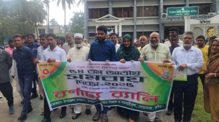হৃদয় রায়হান কুষ্টিয়া (ভেড়ামারা) প্রতিনিধি ভেড়ামারায় জাতীয় সমবায় দিবস পালিত হয়েছে সাম্য ও সমতায় দেশ গড়বে সমবায়, সমবায় শক্তি সমবায়ই মুক্তি’এই শ্লোগানকে সামনে রেখে কুষ্টিয়ার ভেড়ামারা উপজেলা প্রশাসন ও উপজেলা