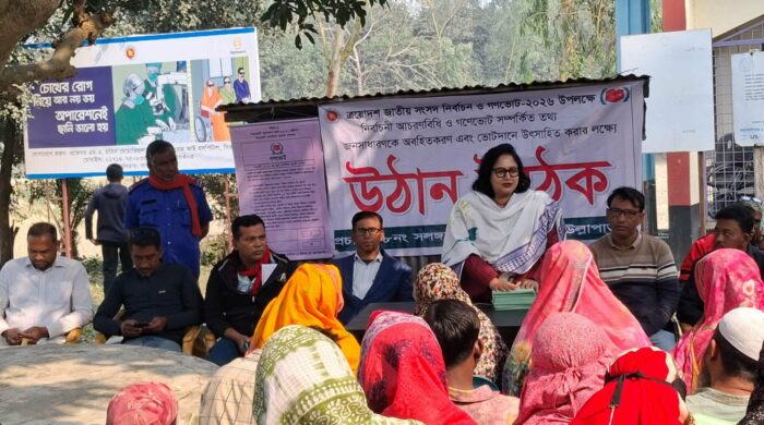 মোঃ আখতার হোসেন হিরন : আসন্ন ত্রয়োদশ জাতীয় সংসদ নির্বাচন-২০২৬ এ আচরণ বিধি ও গণভোট সম্পর্কিত তথ্য জনসাধারণকে অবহিত করন এবং ভোটদানে উৎসাহিত করার লক্ষ্যে সিরাজগঞ্জের সলঙ্গায় উঠান