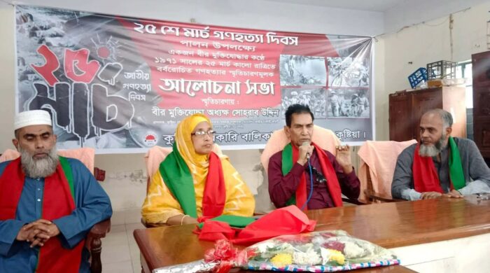 রাশেদুজ্জামান রিমন, কুষ্টিয়া ২৫ মার্চ জাতীয় গণহত্যা দিবস উপলক্ষে কুষ্টিয়ায় এক আলোচনা সভা অনুষ্ঠিত হয়েছে। ১৯৭১ সালের ২৫ মার্চ কালরাতে সংঘটিত বর্বরোচিত গণহত্যার স্মৃতিচারণে এই কর্মসূচির আয়োজন করা হয়।