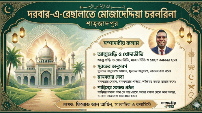 সম্পাদকীয় কলাম সিরাজগঞ্জ জেলার শাহজাদপুর উপজেলা কেবল ব্যবসা-বাণিজ্য বা তাঁতশিল্পের জন্যই প্রসিদ্ধ নয়, বরং এটি যুগে যুগে বহু পীর-আউলিয়ার পদধূলিতে ধন্য এক পুণ্যভূমি। এই জনপদের আধ্যাত্মিক মানচিত্রে অত্যন্ত উজ্জ্বল ও